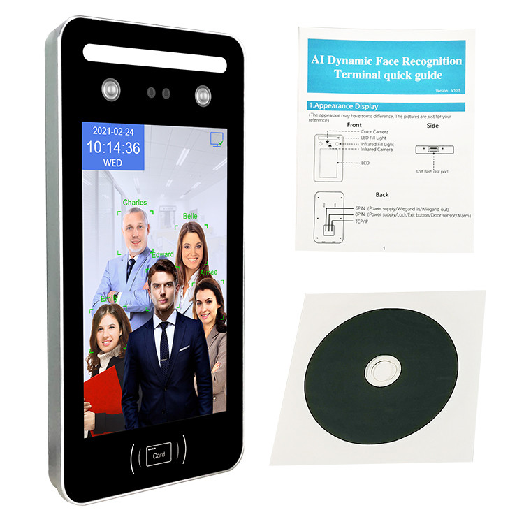 Dual Camera: 200W la macchina fotografica a colori del pixel HD e la macchina fotografica infrarossa 210W con visione notturna infrarossa, possono effettuare l'identificazione rapida in tutto l'ambiente. Distanza di riconoscimento: 0.5-2.5 metri.