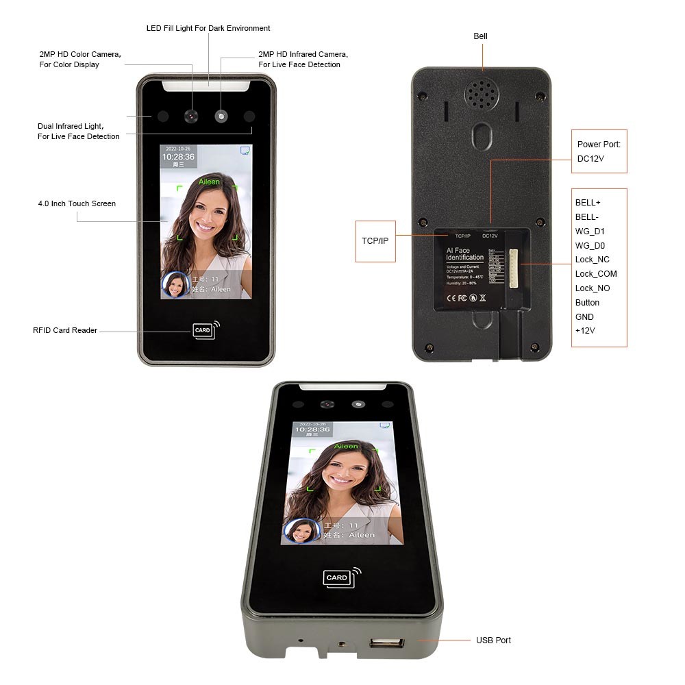 Riconoscimento di fronte dinamico, parola d'ordine, carta di ID/IC facoltativa |